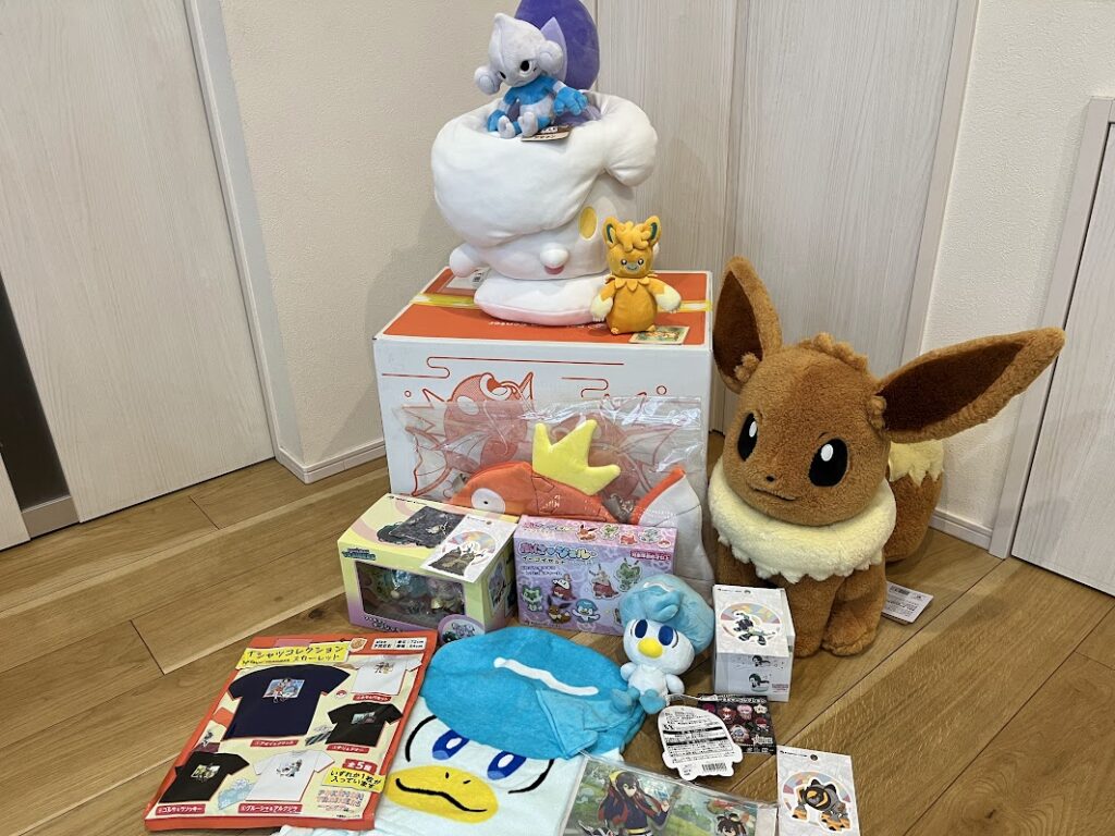 イーブイとヒトモシのでっかいの2個と小さいぬいぐるみ3個でした。