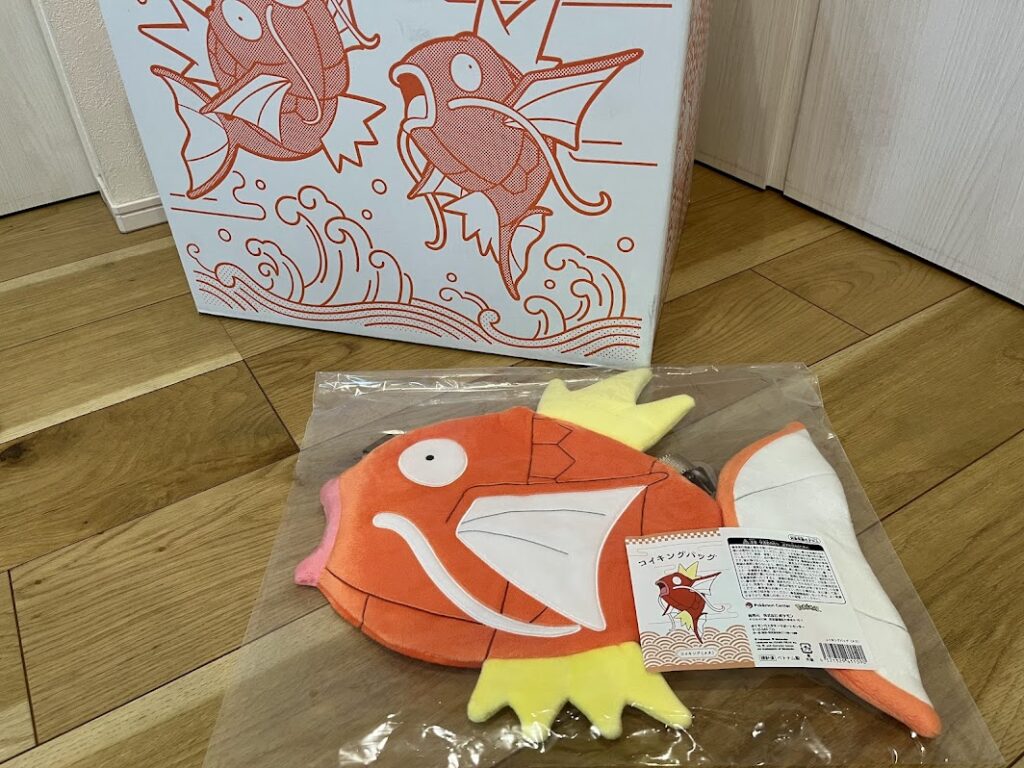 今回の目玉のオリジナル商品はコイキングのバッグです。