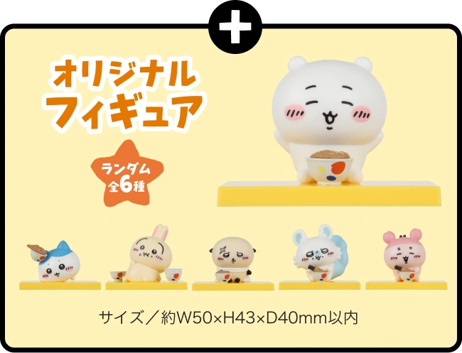 コラボメニュー注文でちいかわのオリジナルフィギュアがランダムで1個もらえる。